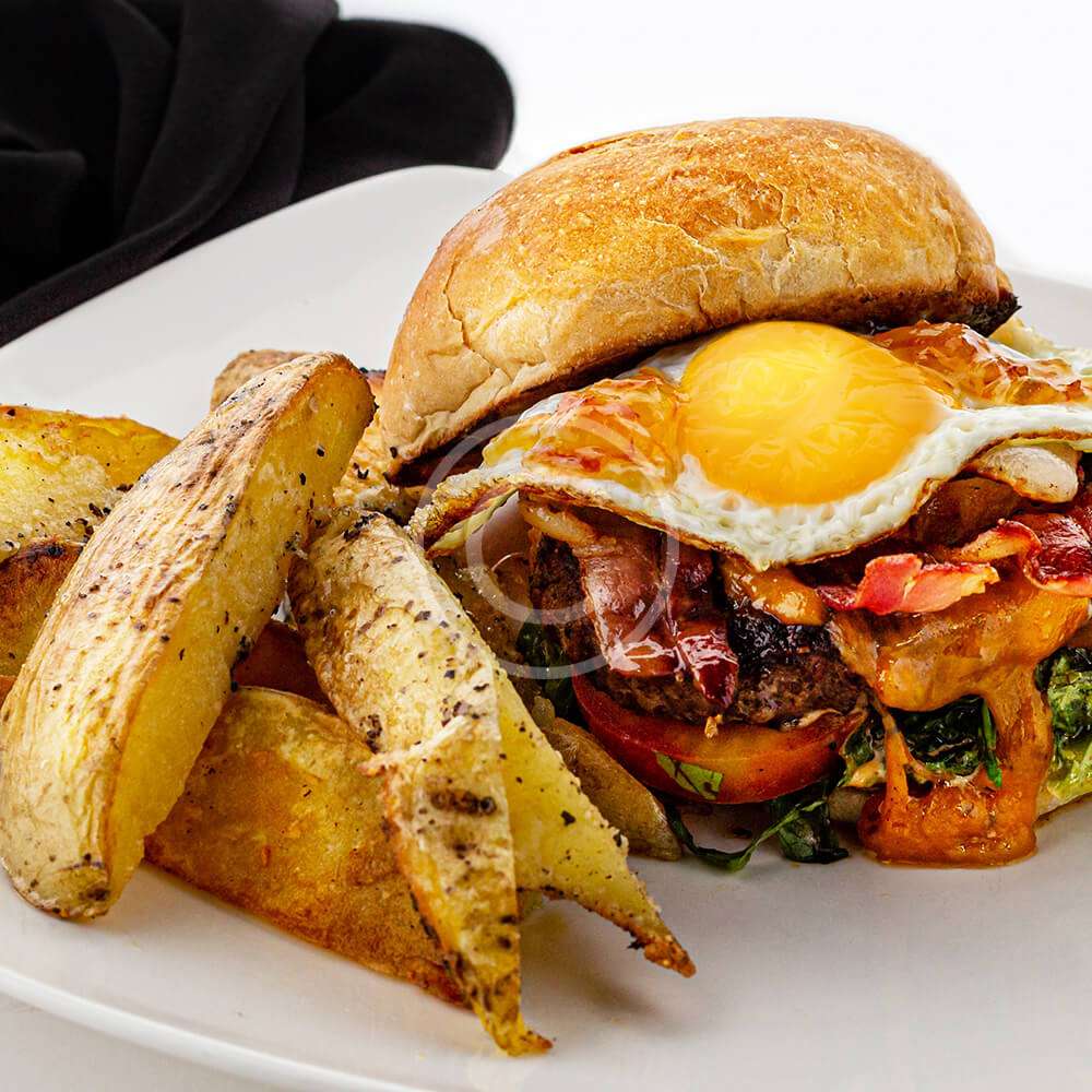 Made with chicken breast meet, delicious bakon, eggs and fries.