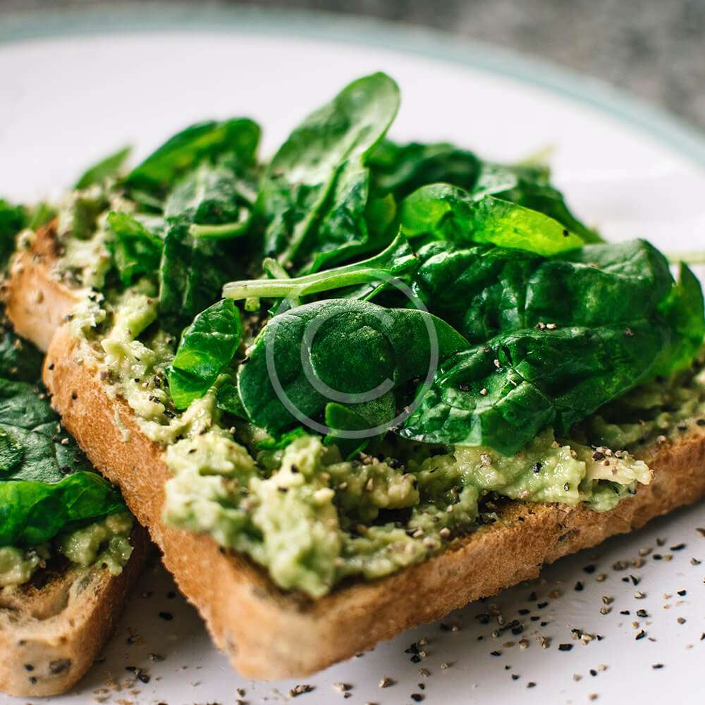 Made with gluten-free toast bread, avocado, basil, and sour cream.